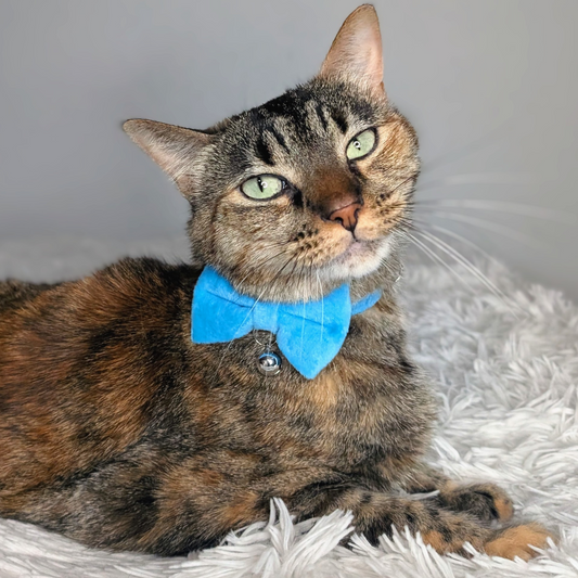 Cosmic Twilight – Teal Celestial Velvet Bowtie Cat Collar