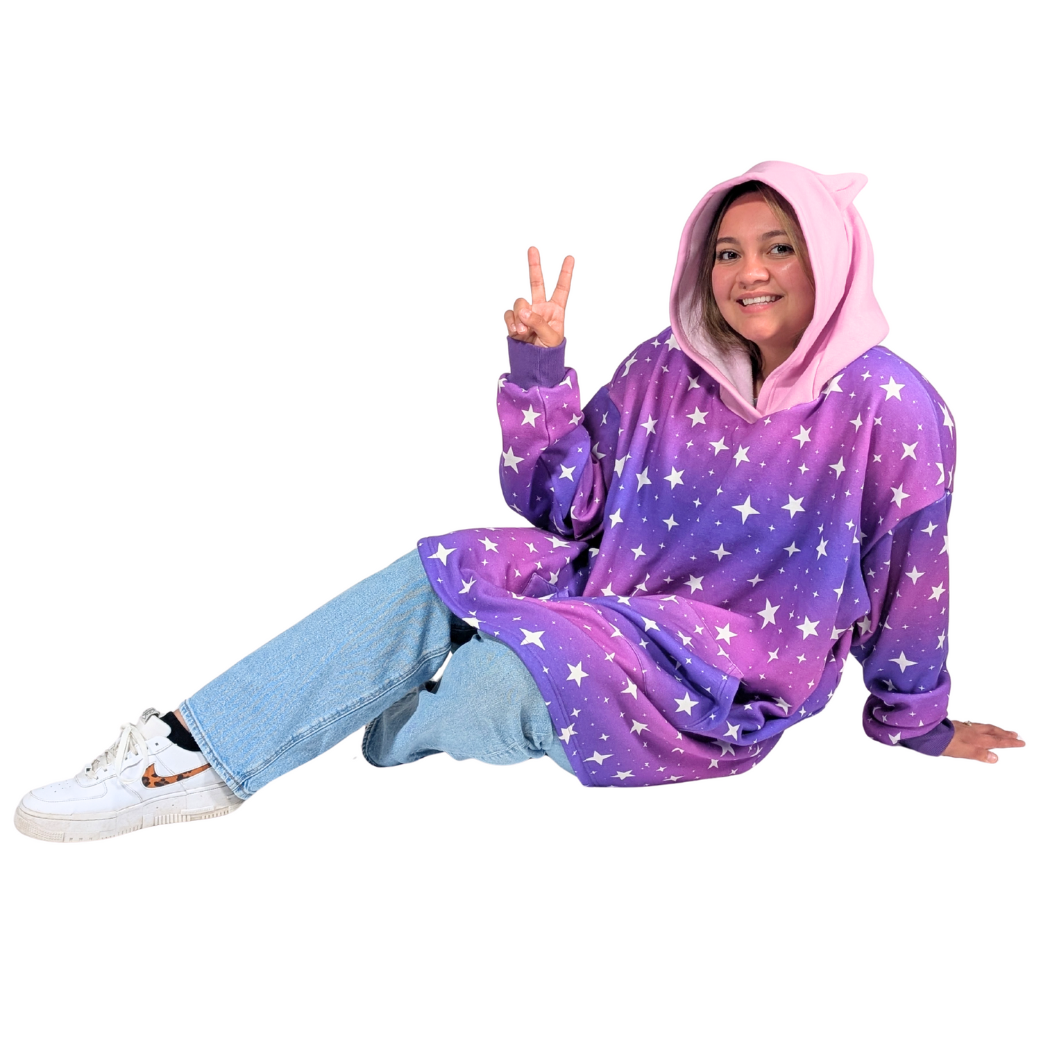 Bring the magic of the stars to snuggle season with our Cozy Cat Ear Hoodie Blanket — a wearable blanket designed for warmth, comfort, and a touch of kawaii charm.