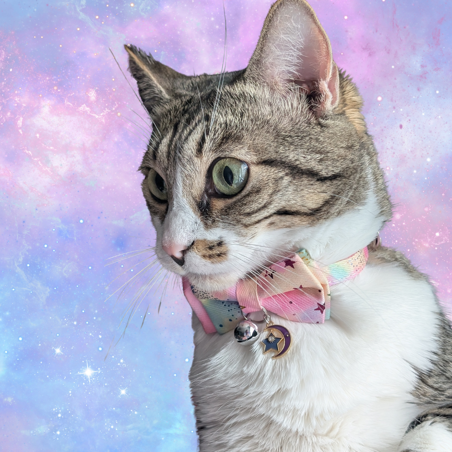 Turn your cat into a star with our Galaxy Cat Collars, a...