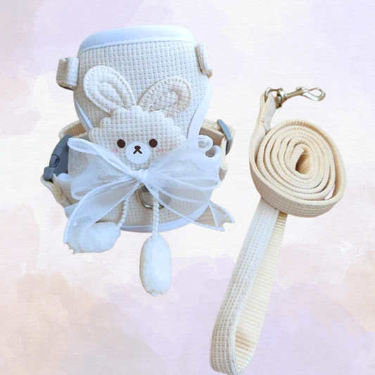 White Bunny Bow Harness + Leash Set