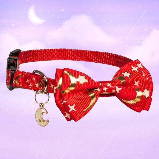 Lunar Ember – Red Celestial Bowtie Cat Collar (Adult Size)