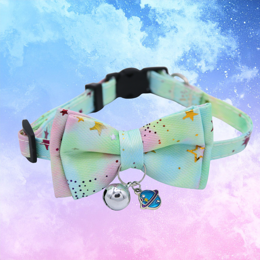 Mint Planet Glow Galaxy Bowtie Cat Collar