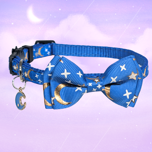 Cosmic Twilight – Blue Celestial Bowtie Cat Collar (Adult Size)