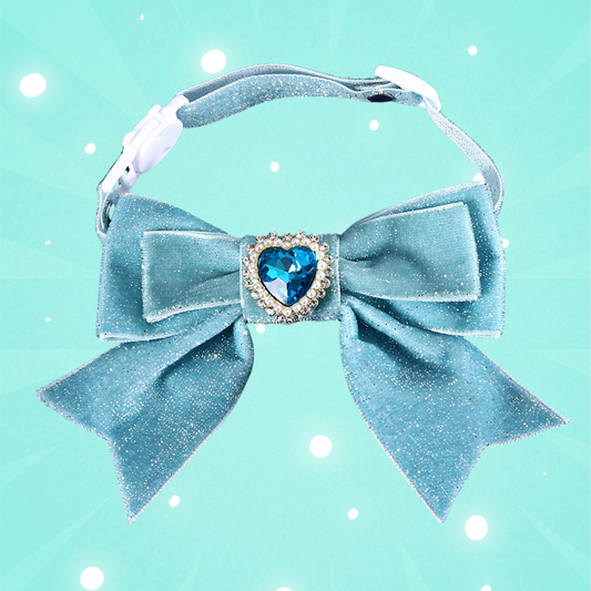 Dreamy Blue Princess Sparkle Bow Cat Collar
