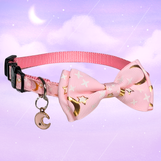 Starlit Blush – Pink Celestial Bowtie Cat Collar (Adult Size)