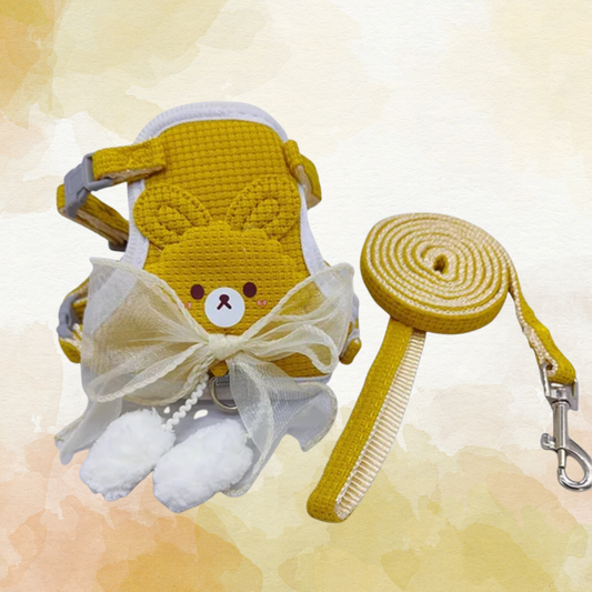 Yellow Bunny Bow Harness + Leash Set
