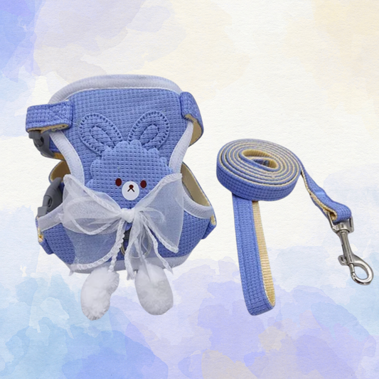 Blue Bunny Bow Harness + Leash Set
