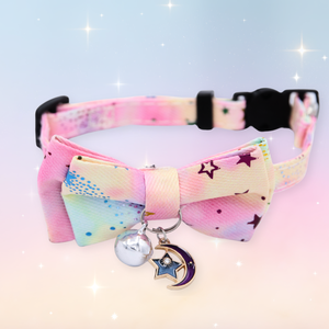 Dreamy Celestial Cat Collar with Bowtie & Bell – Moon & Star Charm (Pink)