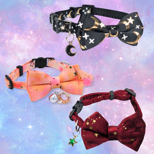Dress your kitty in the magic of the night sky with our Celestial Cat Collars. Choose from soft, durable nylon collars with a moon charm or luxe velvet collars with a sparkling star charm — each designed to bring a little starlight to your feline’s look.