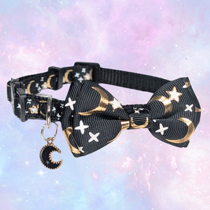 Midnight Moon – Black Celestial Nylon Bowtie Cat Collar