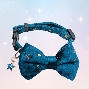 Cosmic Twilight – Teal Celestial Velvet Bowtie Cat Collar