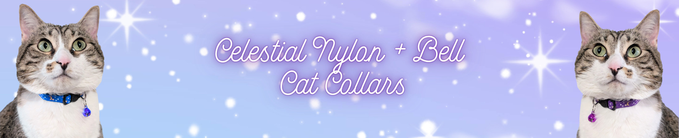Our Celestial Nylon Cat Collars are crafted for comfort, safety, and standout style. The gold celestial pattern pairs with a matching bell in the same color family, creating a coordinated look that feels finished and intentional. Lightweight nylon, adjustable sizing, and a secure breakaway buckle make these collars ideal for daily wear.