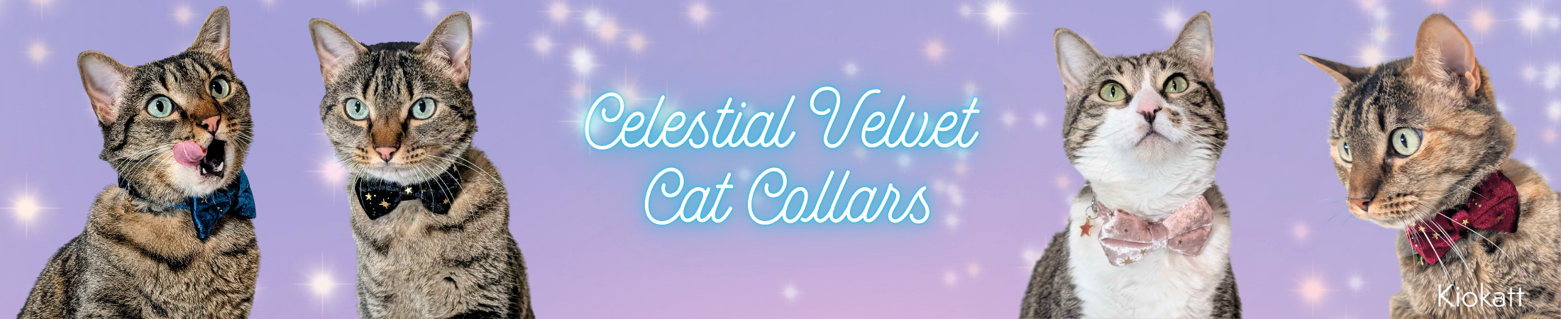 Dress your kitty in the magic of the night sky with our Celestial Cat Collars. Choose from soft, durable nylon collars with a moon charm or luxe velvet collars with a sparkling star charm — each designed to bring a little starlight to your feline’s look.