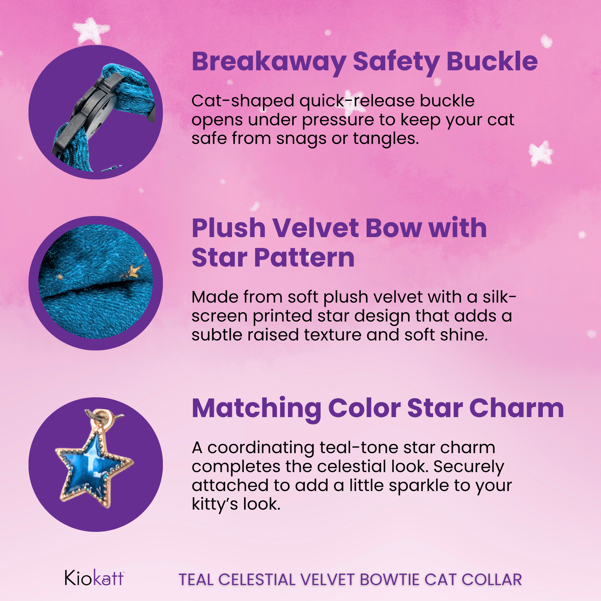 - ✔ Safety: Breakaway clasp for emergency release