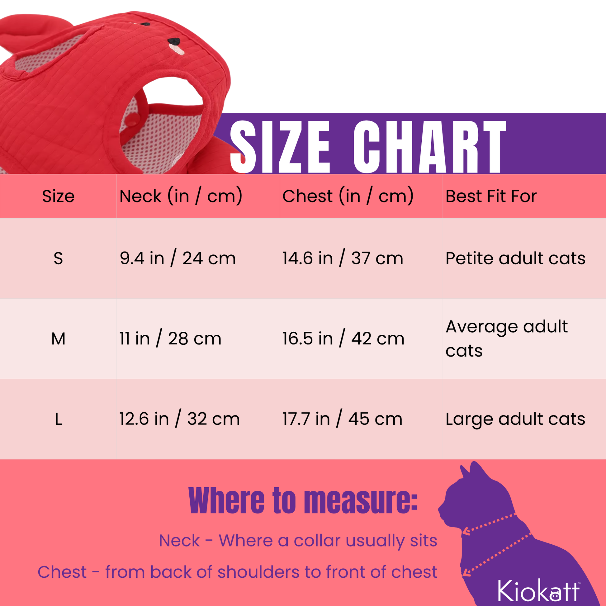 - If your cat is between sizes, choose the larger size for comfort or the smaller size for a snug, escape-resistant fit.